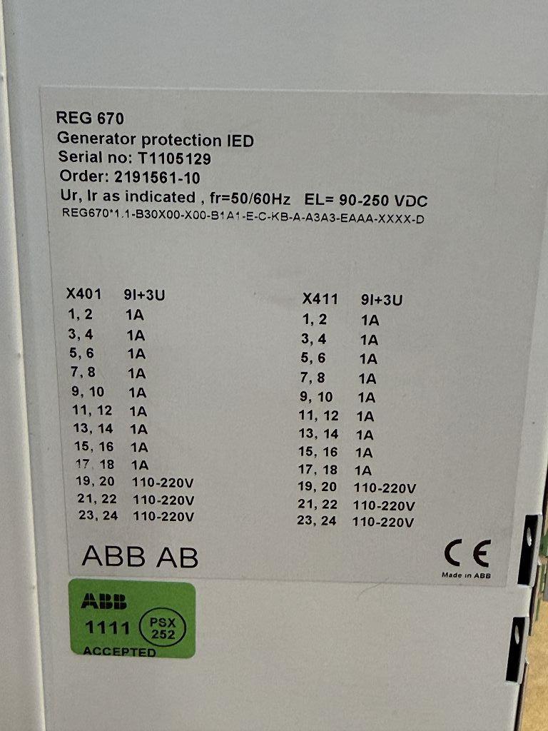 - Produktname / Produktart: REG670 Generator protection IED