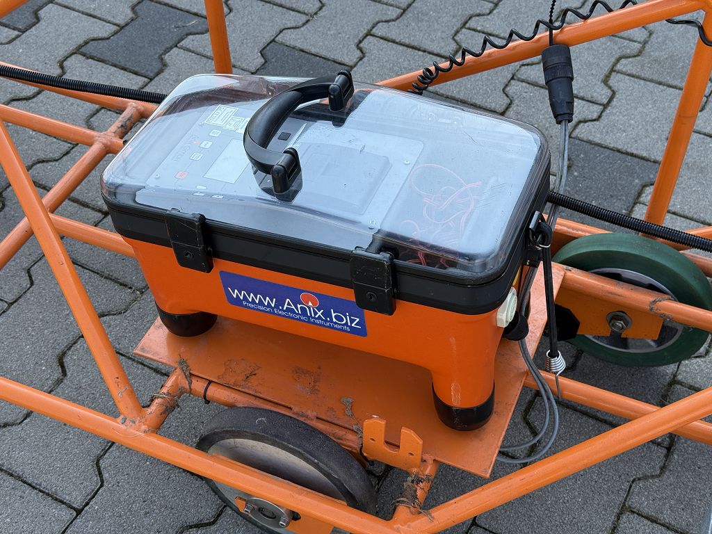Zum Verkauf steht ein mobiles Planograph-Messsystem Anix AX 02 mit der Gerätenummer #1192, montiert auf einem 1-Achs-Anhänger Makoben PLA1100. Das System ist eindeutig identifizierbar über die Bezeichnungen „AX 02“, „Anix GmbH“ sowie die Gerätenummer 1192.