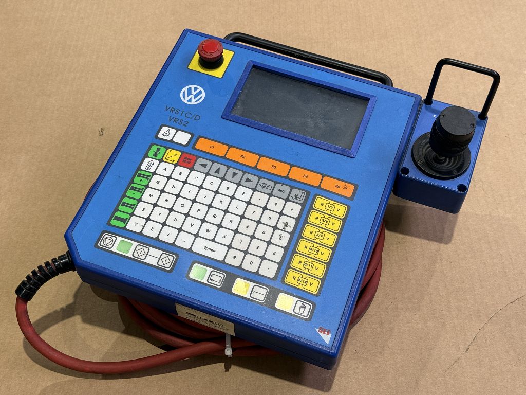 Das Volkswagen VRS1C/D VRS2 Handpult ist eine industrielle Bedieneinheit mit integrierter Tastatur, Display und Joystick-Modul. Auf dem Gehäuse ist die Kennzeichnung „VRS1C/D VRS2“ sowie die Artikelnummer 93278543 ausgewiesen. Das Gerät trägt die IMES-Kennzeichnung „Inventar u. Material Erfassungs System“ mit der Nummer V.20.017.385. Typische Anwendung ist die Bedienung und Steuerung innerhalb von Produktions- und Erfassungssystemen.
