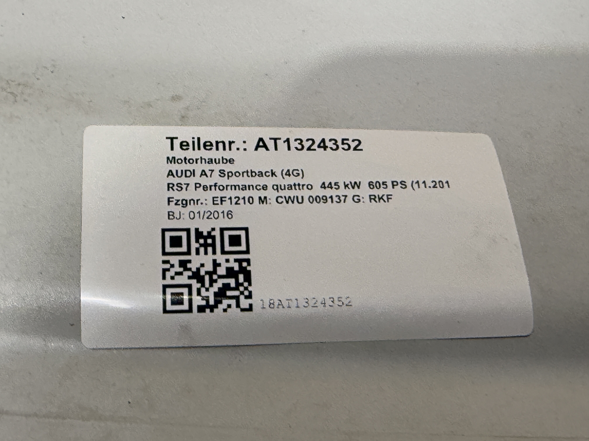 Diese original Audi RS7 4G Performance Motorhaube ist eine ideale Wahl für Fahrzeugbesitzer, die auf Passgenauigkeit, Qualität und Originaldesign setzen.