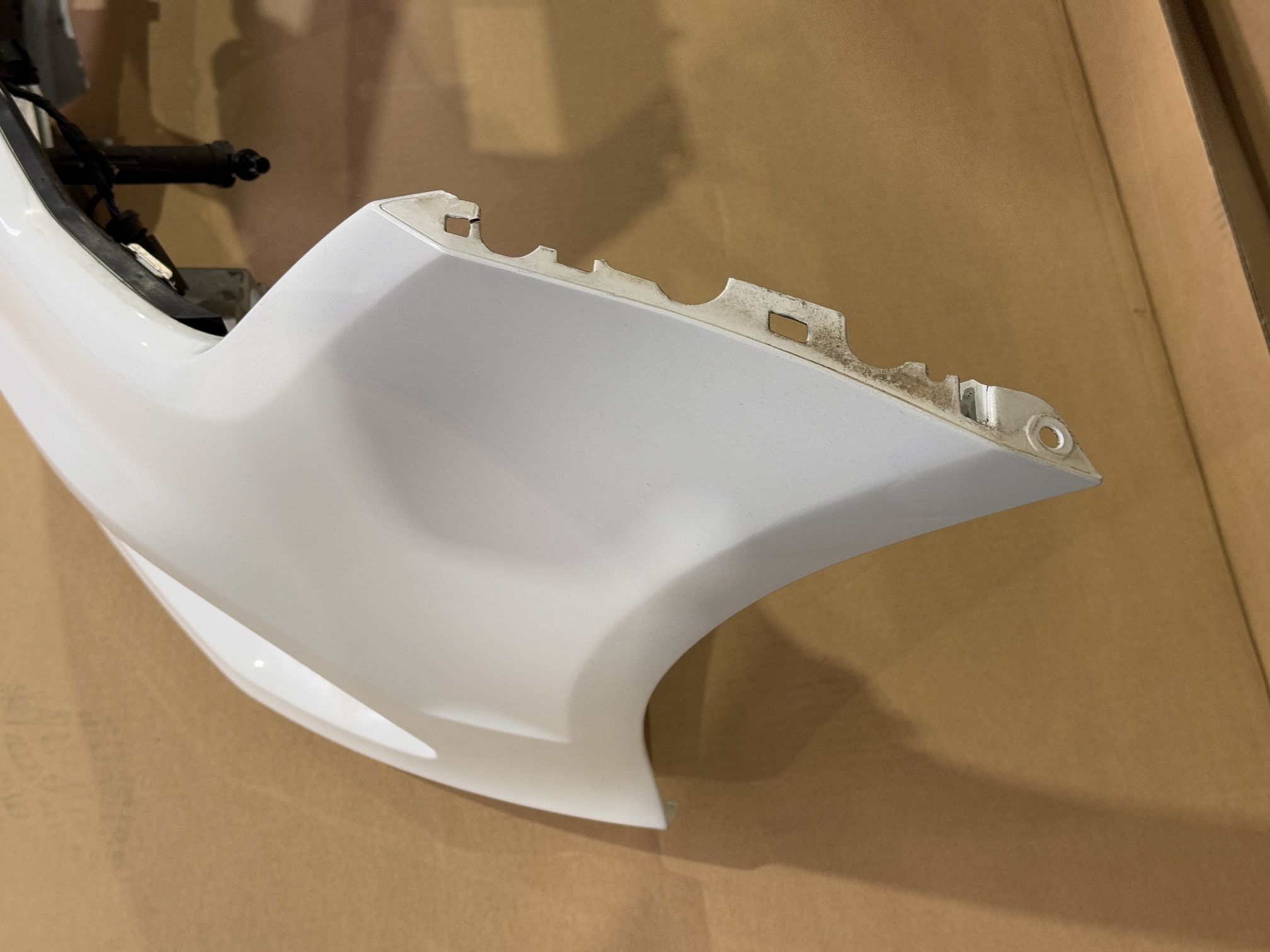 Die Lackierung in Gletscherweiß Metallic (Farbcode: 2Y2Y / S9R) verleiht dem Fahrzeug ein sportlich-elegantes Erscheinungsbild. Das Teil befindet sich in gutem Zustand, eine Politur wird empfohlen.