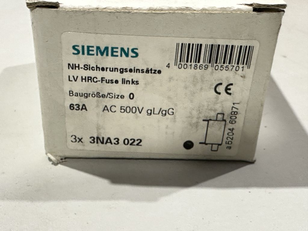 3x 3NA3022 original Siemens NH fuse link 63A NEW