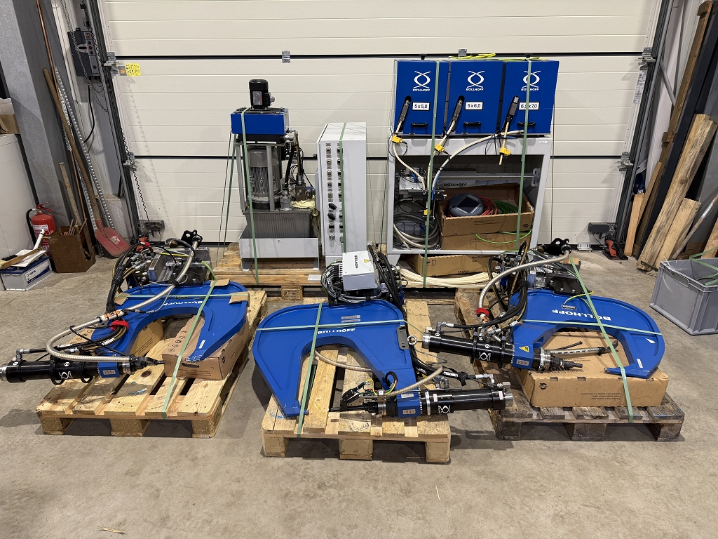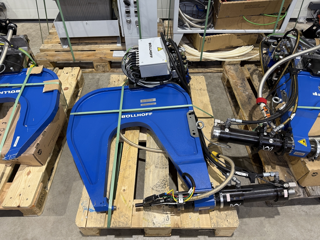 Scope of Delivery: complete system with C-frames, control, hydraulics, and feeding units (see pictures)
