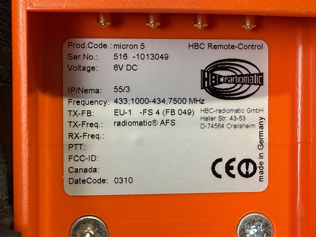 HBC Radiomatic FSE 516 + micron 5 Radio Remote Control System – Item No. 516-1013050 (used)
