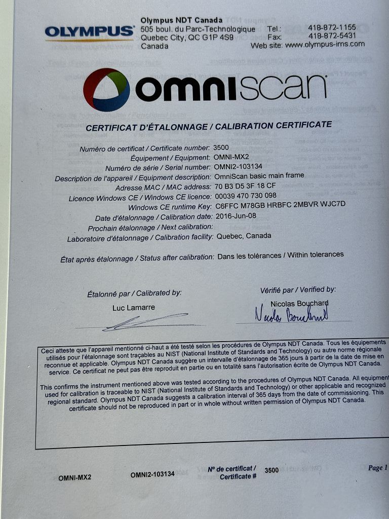 - Product name / type: OmniScan MX2 multi-technology inspection device