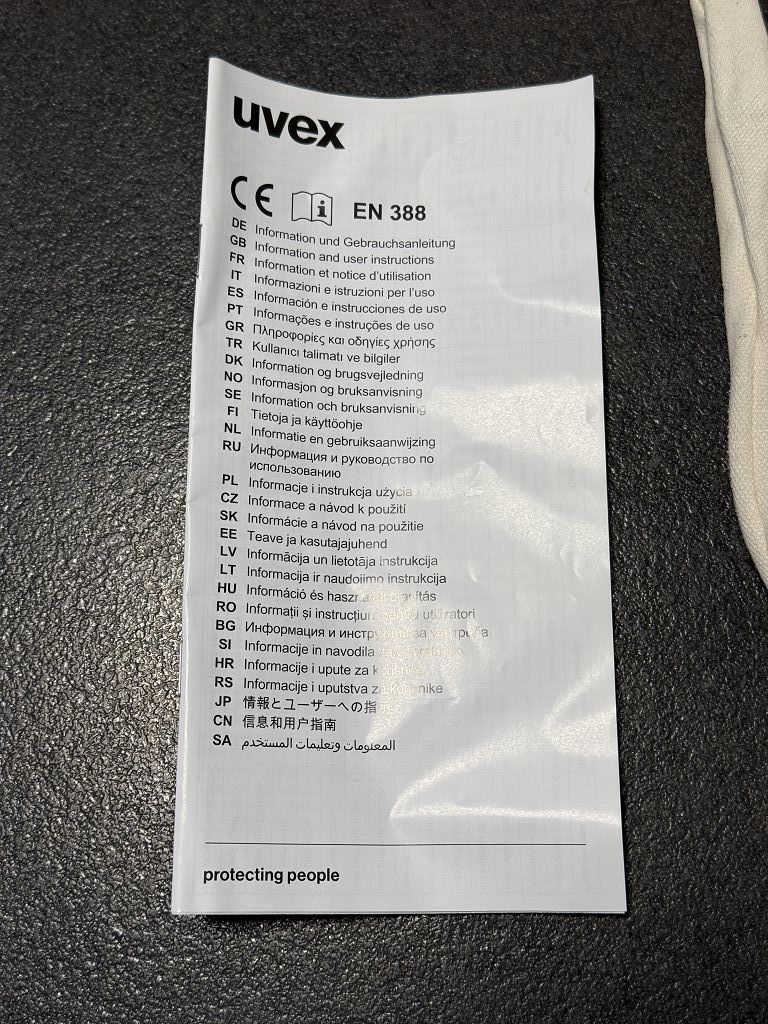 High-quality white assembly gloves from UVEX for precision work in dry working environments.